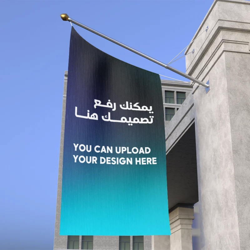 Custom flagpole flags set with a printed 400×100 cm banner and metal pole. Durable, lightweight, and fully customizable — perfect for events, offices, and brand displays.