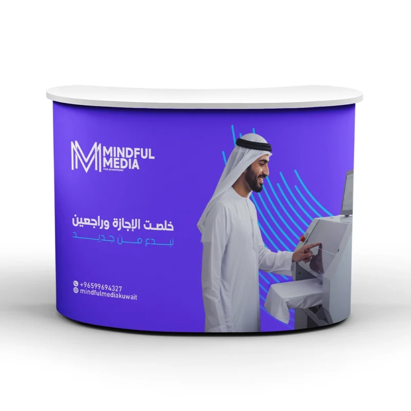 Our Pop Up Counter Tables are foldable display tables specially designed for exhibitions, trade shows, and promotional events. Lightweight, portable, and easy to assemble, these counters feature high-quality customizable printing to showcase your brand professionally. The sturdy aluminum stand ensures stability and durability for repeated use, making them a reliable choice for all your marketing campaigns.