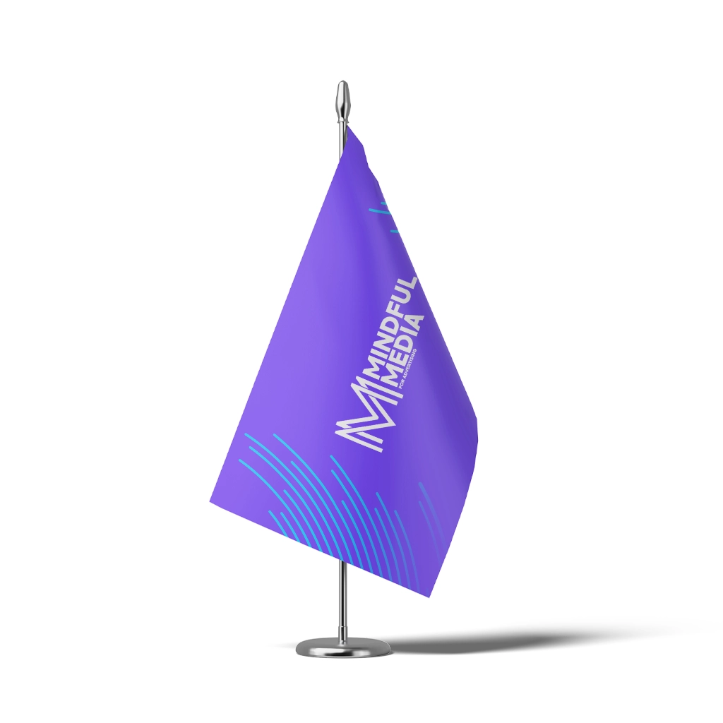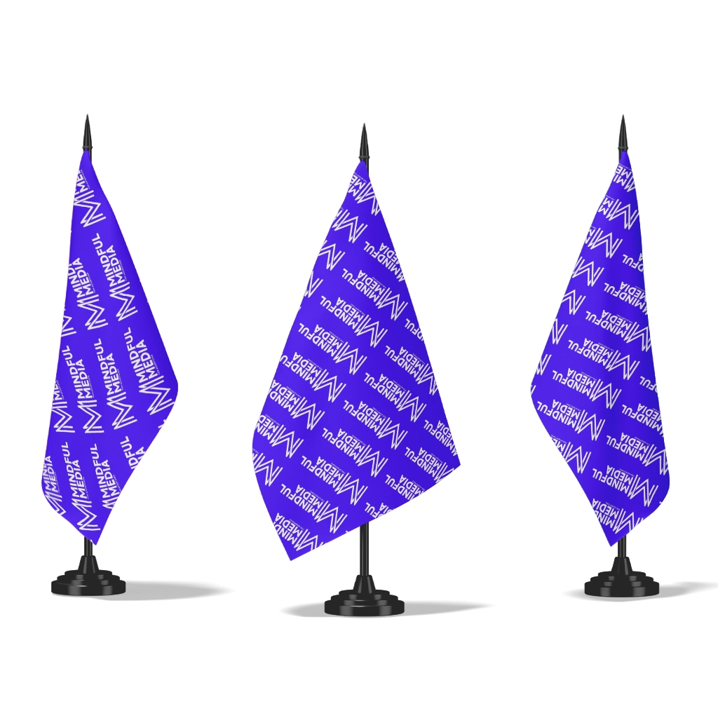 Mindful table flags are custom-printed, durable, and perfect for events, offices, and branding. A stylish way to showcase your identity.
